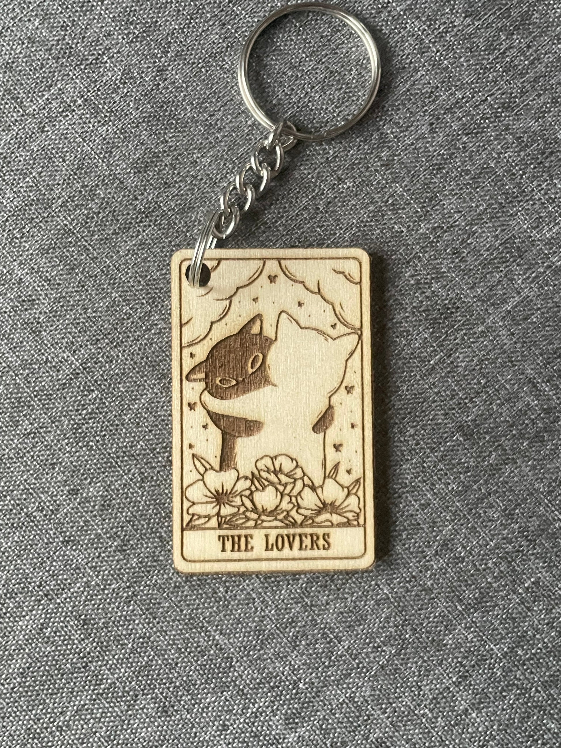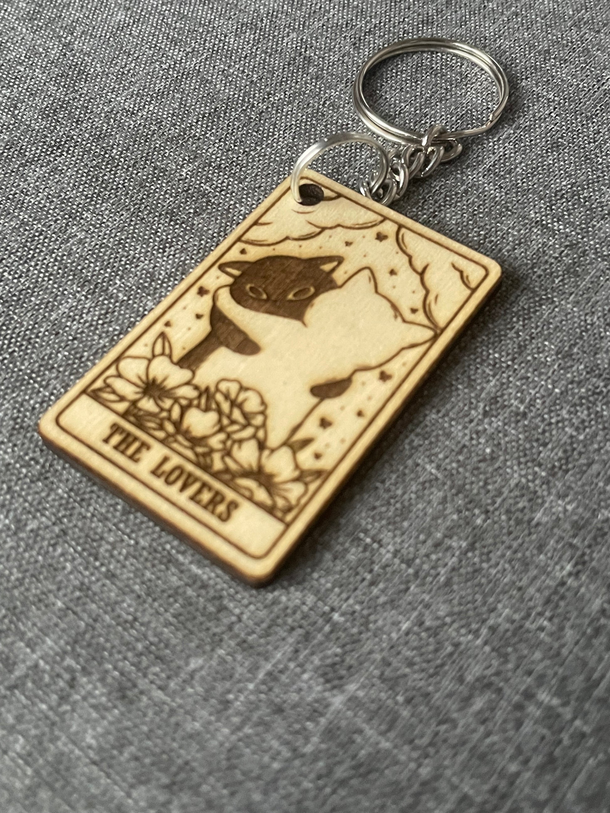 Carry a little piece of magic wherever you go with The Lovers Tarot Cat Keychain. Inspired by the mystical tarot card, this handcrafted keyring blends witchy symbolism, boho charm, and feline energy into a unique accessory.