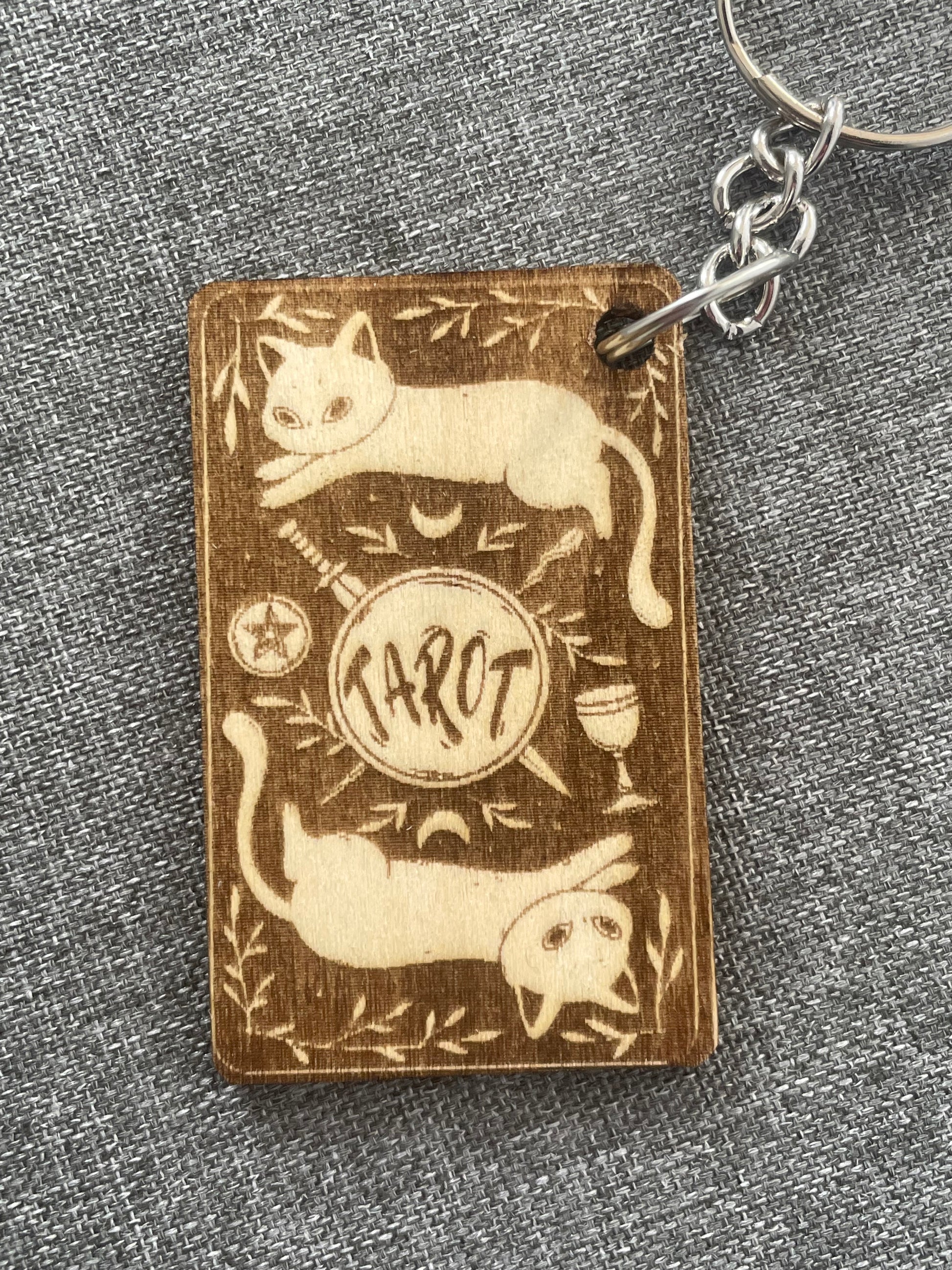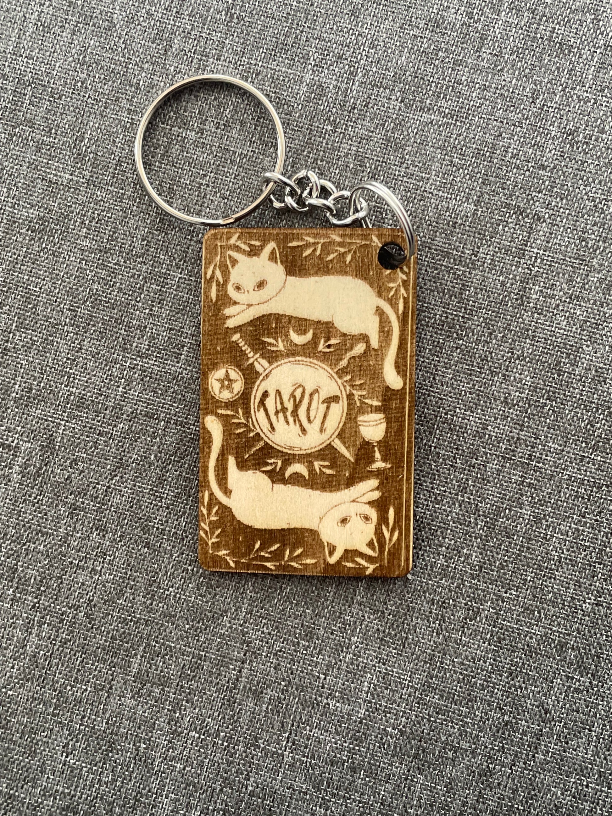 Unique tarot cat lovers keyring. Handmade boho gift with mystical vibes, perfect for spiritual cat lovers and tarot fans.
